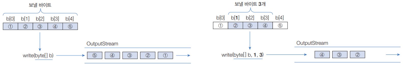 - 배열의 일부분을 출력하려면 write(byte[] b, int off, int len) 메소드를 사용합니다.