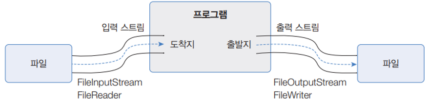 - 프로그램을 기준으로 데이터가 들어오면 입력 스트림, 데이터가 나가면 출력 스트림