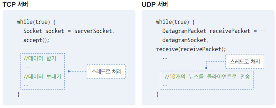 - 일반적으로 서버는 다수의 클라이언트와 통신합니다.