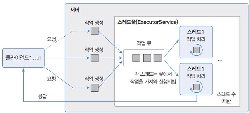 - 스레드풀을 이용해서 클라이언트의 요청을 동시에 처리