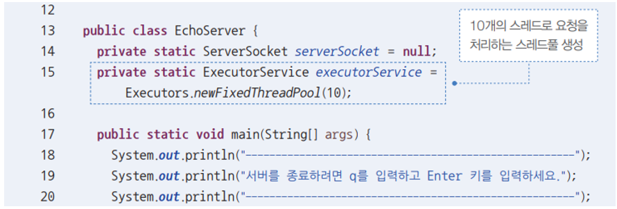 import java.util.concurrent.ExecutorService; // 스레드풀 (스레드의 갯수 제한)