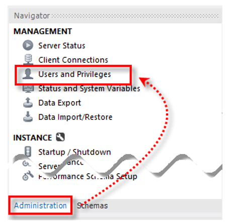 - [Navigator]의 [Administration] 탭 -> [User and Privileges]클릭