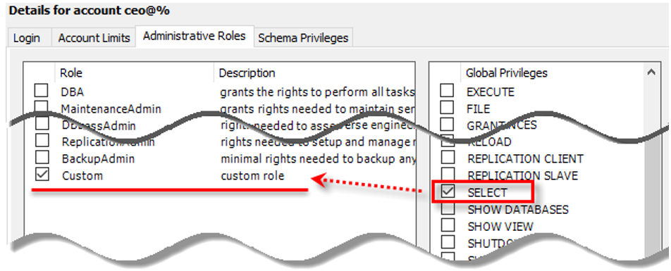 - [Global Privileges] 중에서 <SELECT>체크