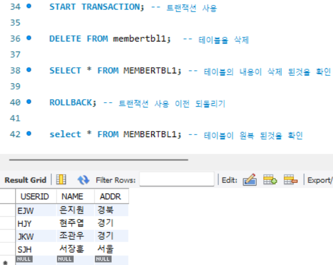 트랜잭션을 사용해서 복구 시키기 ( ROLLBACK)