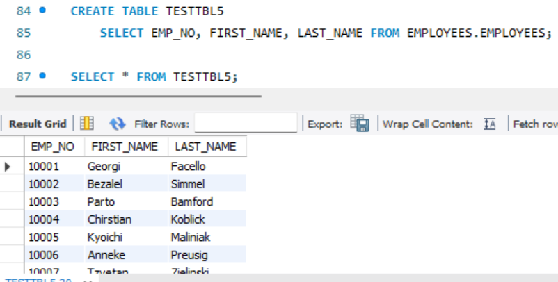 CREATE TABLE BIGTBL3 (SELECT * FROM employees.EMPLOYEES);
