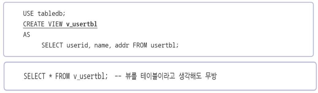 - 일반 사용자 입장에서 테이블과 동일하게 사용하는 개체