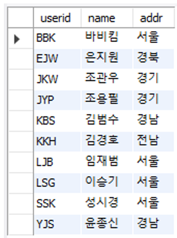 select userid, name, addr from usertbl;