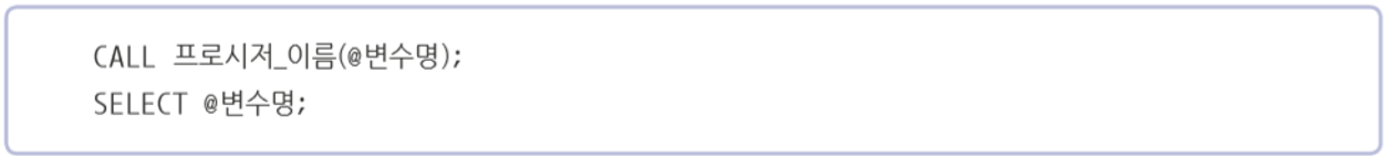 - 출력 매개 변수에 값 대입하기 위해 주로 SELECT...INTO 문 사용