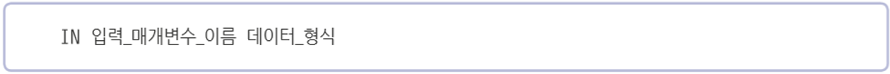 create procedure userproc1(in username varchar(10)) -- in 입력 매개 변수