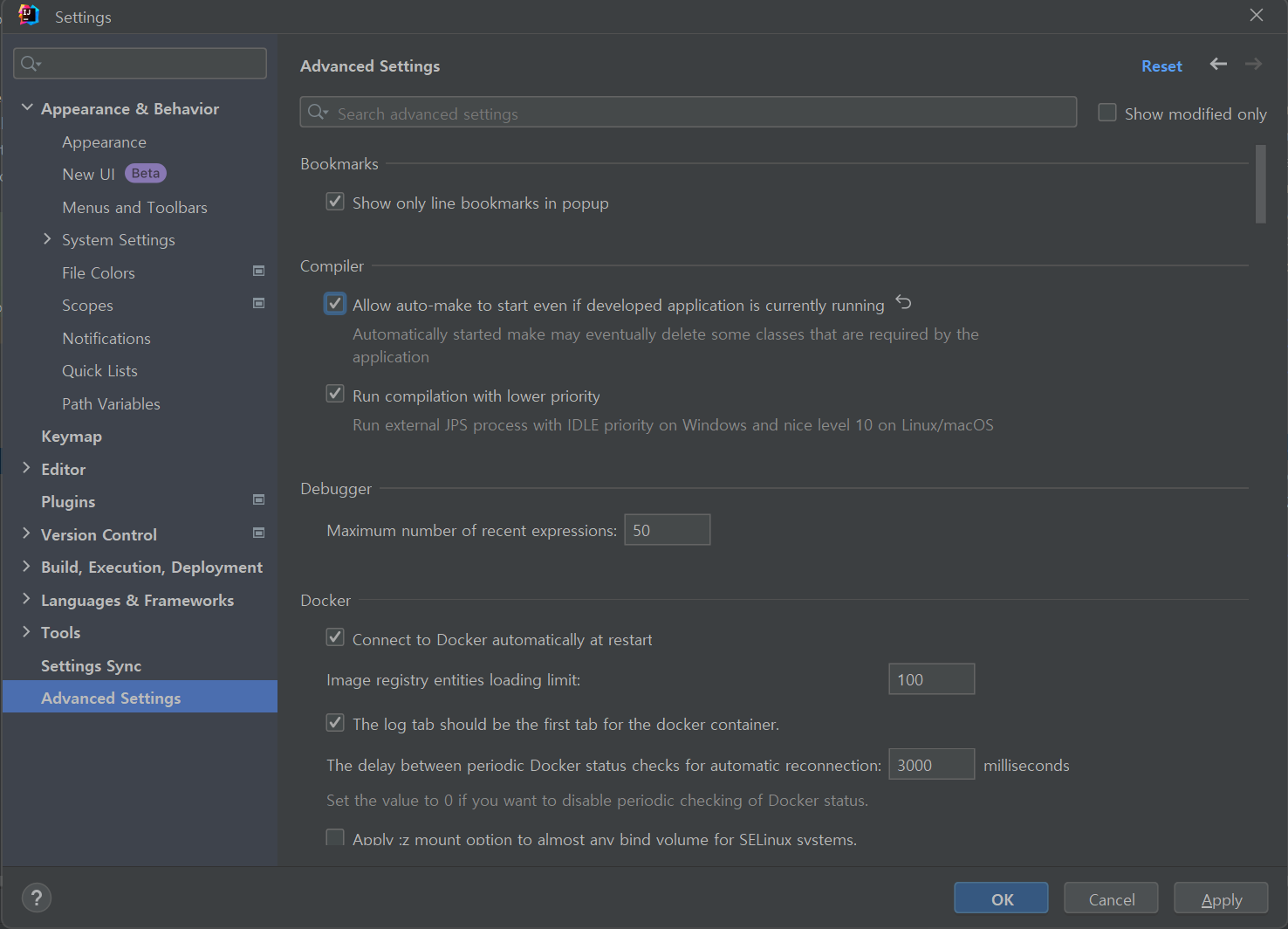 인텔리제이의 버전이 바뀌기전에는 [shift]키 두번 눌러서 registry 선택하고 체크~ 를 했었는데.