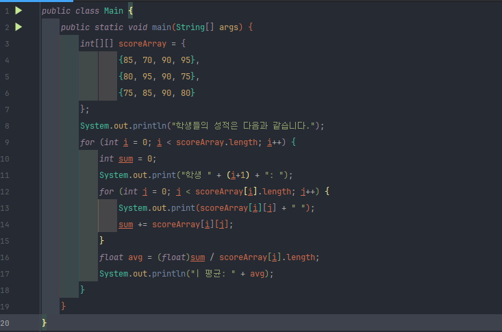 int sum을 선언하고 for문 내부에서 sum을 불러서 값을 넣어줄때 sum의 값을 지속적으로 변경해주는 것이야
