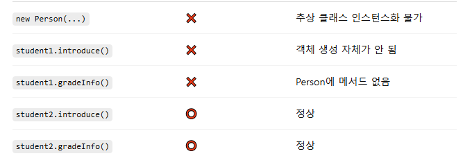 - 추상 클래스는 직접 객체 생성이 불가능하다