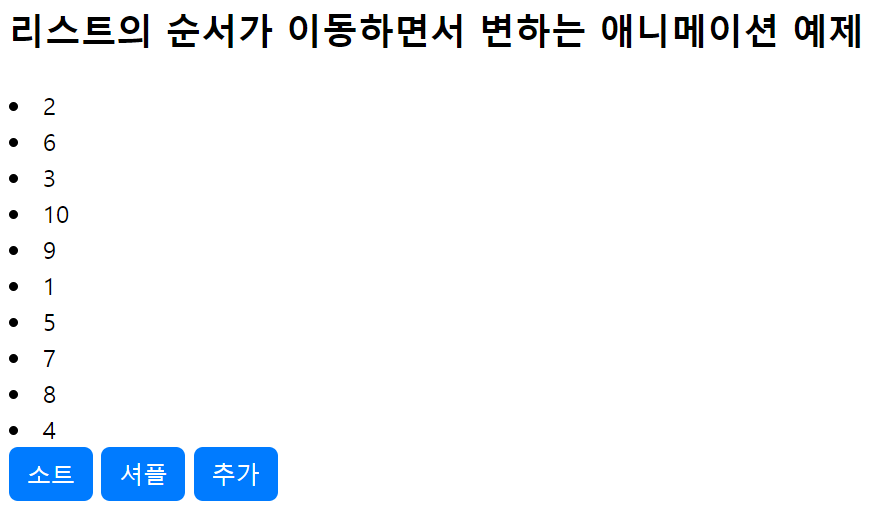 <h2>리스트의 순서가 이동하면서 변하는 애니메이션 예제</h2>
