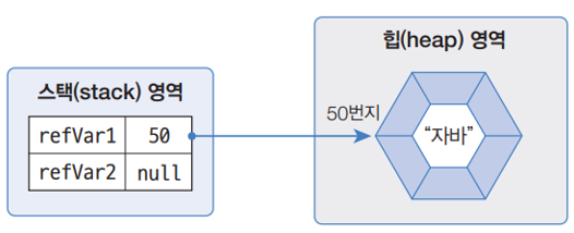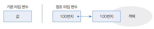 - 기본타입으로 선언된 변수는 값 자체를 저장하지만, 참조 타입으로 선언된 변수는 객체가 생성된 메모리 번지를 저장합니다.