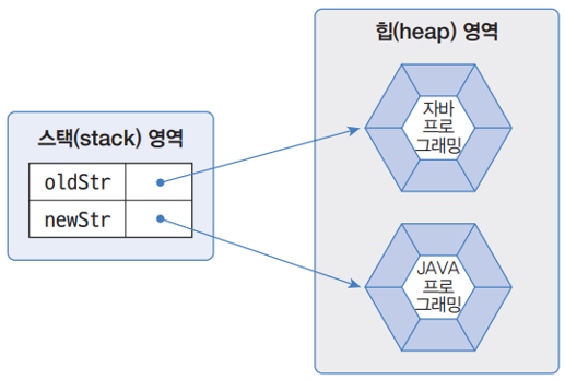 System.out.println("strVar1과 strVar2는 참조가 다름");