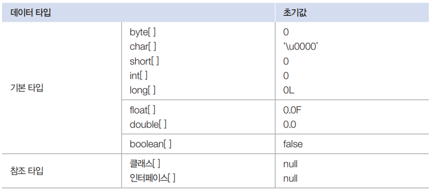 null값 : 참조 타입 변수는 아직 번지를 저장하고 있지 않다는 뜻입니다.