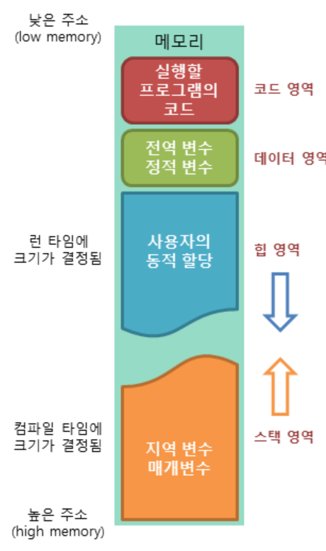 - 데이터 영역은 프로그램 시작과 함께 할당되며, 프로그램이 종료되면 소멸합니다.