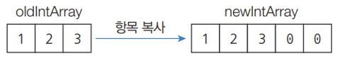 더 많은 저장공간이 필요하다면 배열을 새로만들고 이전 배열로부터 항목을 복사해야합니다.